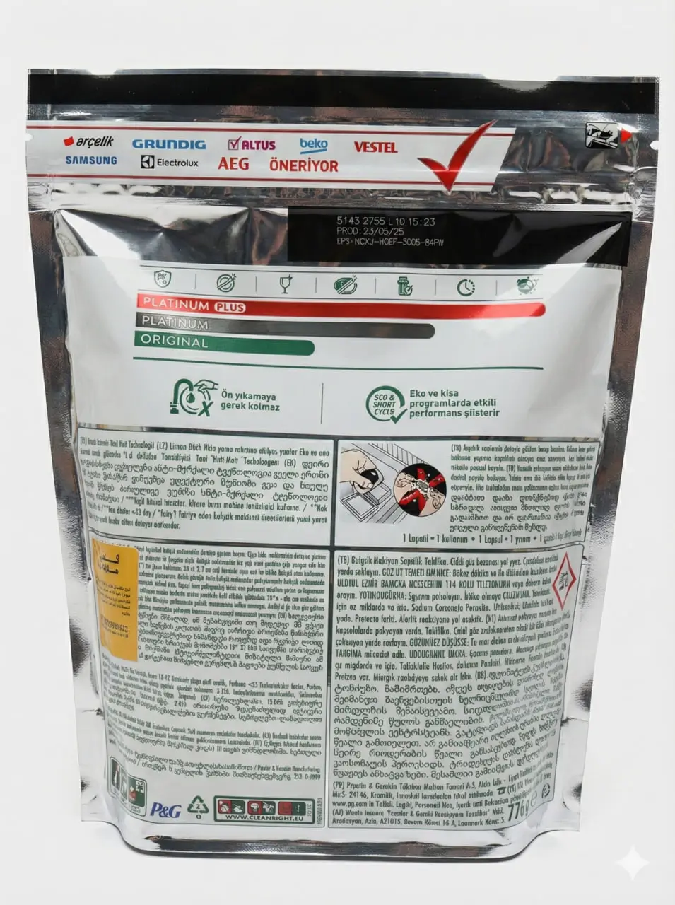 قرص ماشین ظرفشویی 50 عددی پلاتینوم پلاس با ترکیبات پیشرفته خود، تجربهای بینظیر از شستشوی ظروف را ارائه میدهد. این محصول علاوه بر پاککنندگی قوی، باعث درخشش ظروف و محافظت از ماشین ظرفشویی میشود. اگر به دنبال یک شوینده کامل و حرفهای برای ماشین ظرفشویی خود هستید، پلاتینوم پلاس 50 عددی یک انتخاب عالی خواهد بود.