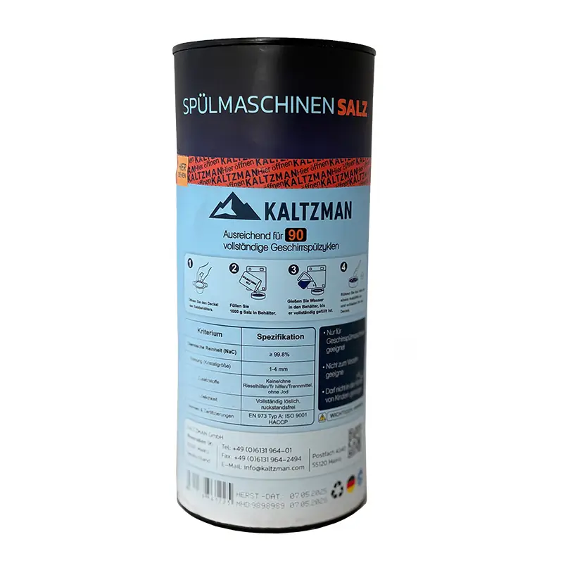 نمک ظرفشویی کالتزمن محصولی با کیفیت بالا و تولید کشور آلمان است. مشخصه بارز این نمک خلوص بسیار زیاد آن (۹۹٫۸٪ سدیم کلرید) و عدم وجود افزودنیهای شیمیایی است. درصد خلوص بالا به این معناست که تقریباً هیچ ماده اضافی یا ناخالصی در نمک وجود ندارد و تمام آن به طور کامل در آب حل میشود . این ویژگی باعث میشود نمک کالتزمن بهخوبی سختی آب را بگیرد و هیچ رسوب یا ذره غیرمحلول در مخزن نمک بر جای نگذارد . دانهبندی نمک کالتزمن بین ۱ تا ۴ میلیمتر است که نشاندهندهی اندازه درشت و یکنواخت کریستالهای نمک میباشد. این دانههای یکنواخت طوری طراحی شدهاند که به تدریج حل شوند و عملکرد نرمکننده آب ماشین ظرفشویی را به صورت مداوم حفظ کنند. تولید این نمک تحت استانداردهای دقیق آلمانی انجام شده و فاقد هرگونه مواد افزودنی مثل ضد کلوخهشدن است؛ بنابراین یک محصول کاملاً طبیعی و خالص محسوب میشود. نمک کالتزمن برای همه برندهای ماشین ظرفشویی قابل استفاده است و سازگاری بالایی دارد. به دلیل همین خلوص و کیفیت ساخت، این نمک عملکرد بسیار موثری در جلوگیری از تشکیل رسوبات آهکی در دستگاه و روی المنتهای حرارتی دارد و به طول عمر ماشین ظرفشویی کمک میکند. استفاده از نمک کالتزمن همچنین ظروف را بدون لکه و درخشنده نگه میدارد، چرا که آب را به اندازه مطلوب نرم کرده و اجازه نمیدهد املاح معدنی روی ظروف بنشینند. بسیاری از مصرفکنندگان حرفهای کیفیت نمک کالتزمن را در حد بالاتری ارزیابی میکنند و آن را انتخابی هوشمندانه برای حفاظت بهتر از دستگاه و ظروف میدانند. در مجموع، کالتزمن با تمرکز بر خلوص و دقت در تولید، تصویری از یک نمک ظرفشویی قابل اعتماد و موثر ارائه داده است که نتایج شستشو را بهبود میبخشد
