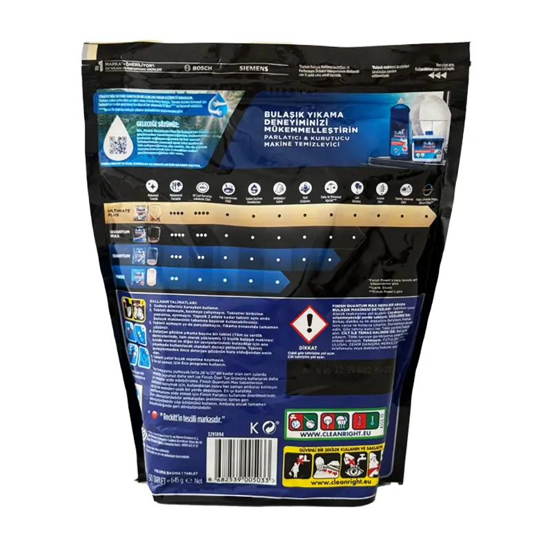 قرص فینیش Quantum Max با ترکیبی از سه عملکرد قدرتمند، لکههای چربی، باقیمانده غذا و لکههای سخت آب را از بین میبرد. این ویژگی باعث میشود حتی قابلمهها و ظروف بسیار چرب نیز در یک شستشو کاملاً تمیز شوند.