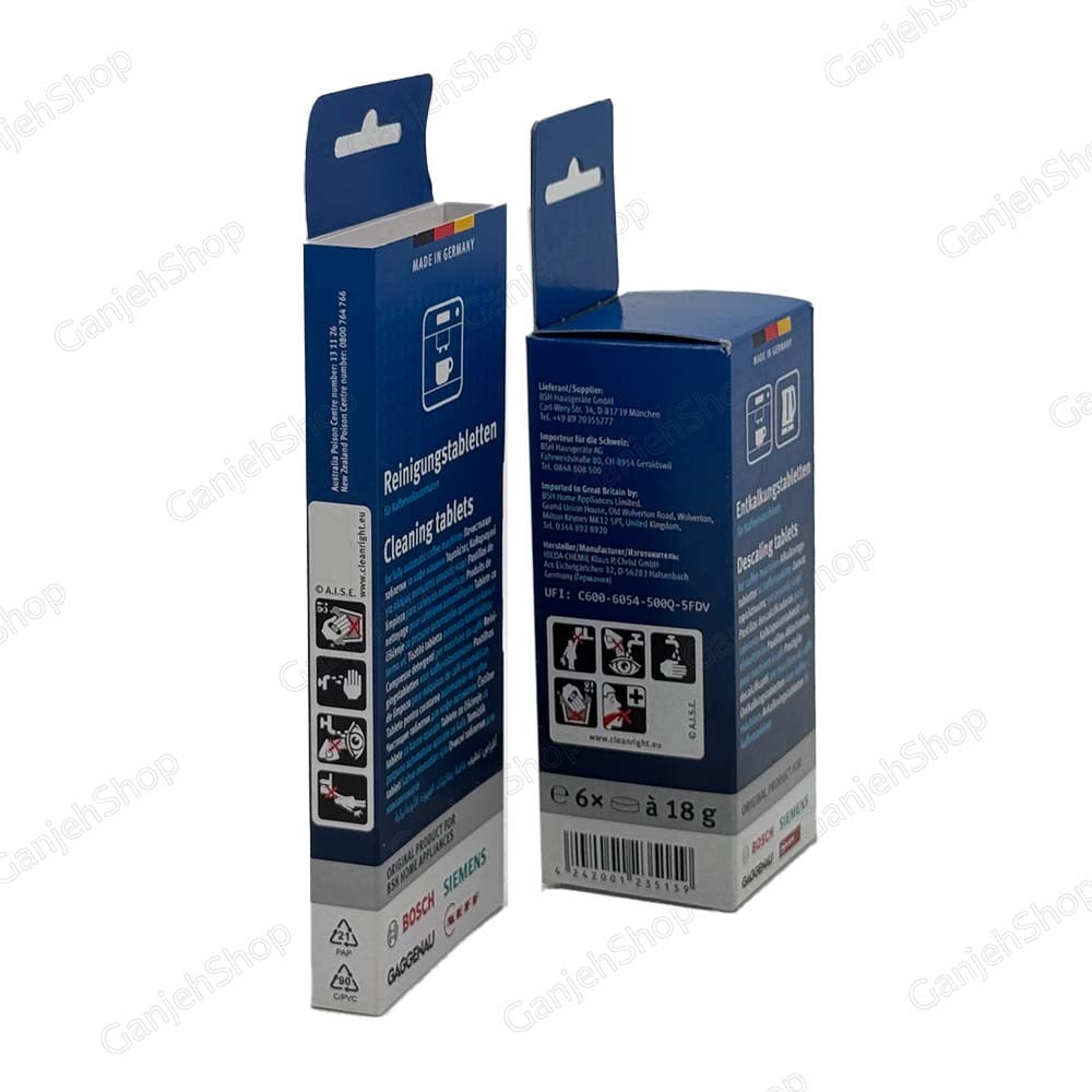 این پک یک مجموعه کامل برای جرمگیری و سرویس قهوهسازهای رومیزی و یا توکار میباشد. در این پک 6 عدد قرص کالک و ده عدد قرص کلین قرار دارد و برای حدودا 10 مرتبه حرمگیری دستگاه کافی است. قرص کلین برای جرمگیری و رسوبزدایی مخزن قهوه و آسیاب دستگاه میباشد و قرص کالک برای رسوب زدایی مخزن آب دستگاه است. این پک ساخت کشور آلمان بوده و دارای کد پارت شرکت بوش آلمان میباشد و ضمانت اصالت کالا توسط تعمیرآنلاین تایید میشود. این پک برای تمامی قهوهسازهای جهان از جمله دستگاههای صنعتی و دستگاههای برند زیر مجموعه بوش از جمله زیمنس و نف و گاگنا نیز مناسب میباشد.