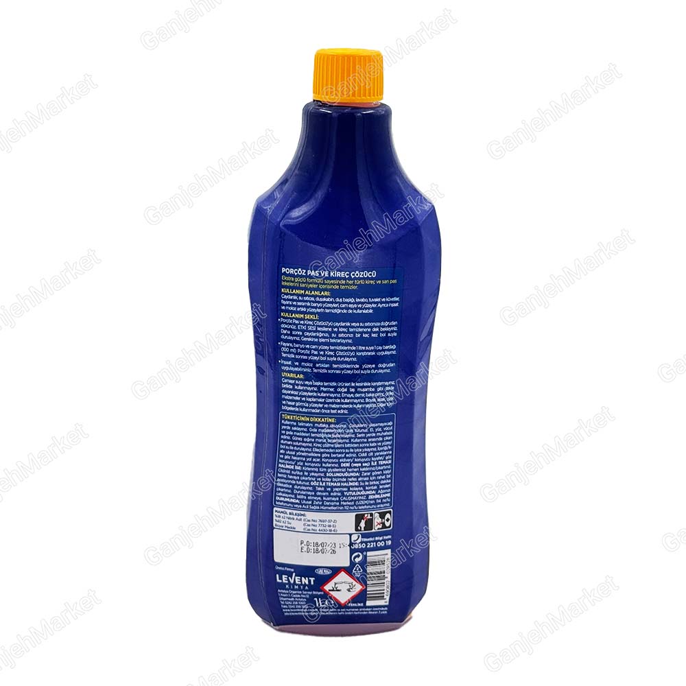 مایع جرم گیر چایساز Porcoz مدل EKSTRA GUCLU حجم 1000 میل برای جرم زدایی و رفع رسوب کتری و قوری، کتری برقی، کابین دوش، سردوش، روشویی، توالت فرنگی، سطوح کاشی و سرامیک و وان حمام محصولی ایده آل است و بسیار کاربردی می باشد.