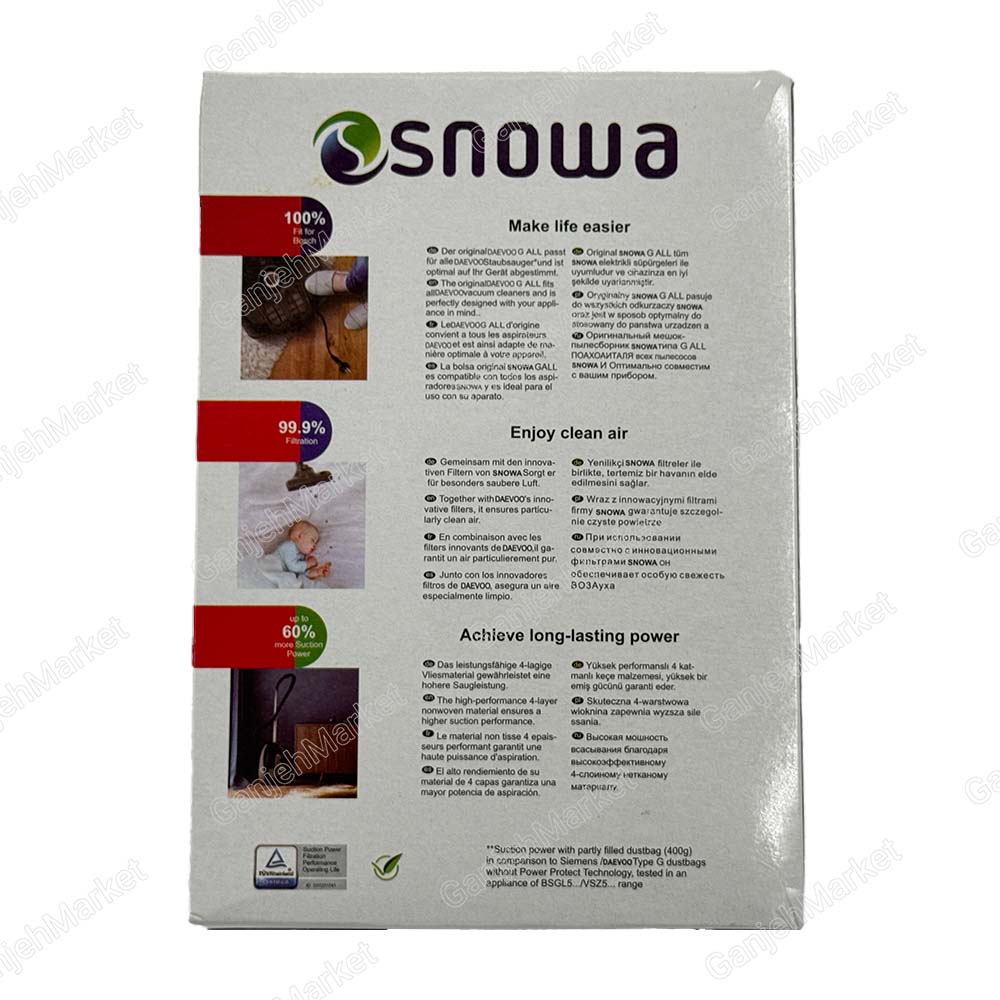 پاکت جاروبرقی اسنوا و دوو نانو بسته 4 عددی