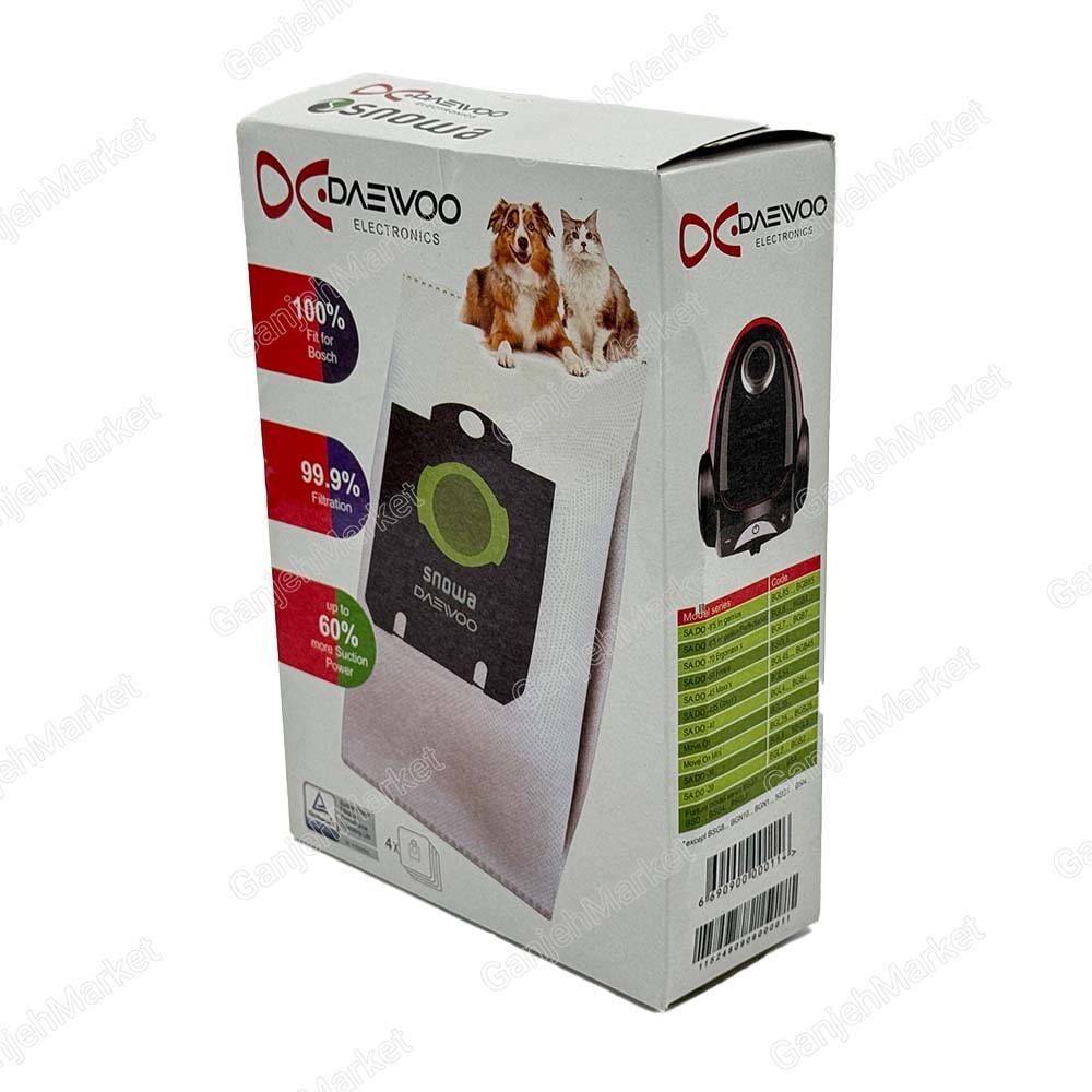 ویژگی های پاکت جاروبرقی دوو مطابق با مشخصات فنی جاروبرقی های دوو در نظر گرفته شده است که به افزایش طول عمر جاروبرقی و کاهش مصرف انرژی کمک می کند.
